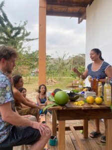 The Jungle to the Ocean: A seamless transition from the deep green of the forest to the breath of the Pacific Ocean, just half an hour away from the land. After the 3 days in the jungle, if you want to stay a whole day or more, on the Ocean: you can stay in Iris and David’s little beach house on the shore of the ocean in a tiny fisher village. You can watch the fisher going out every morning with their little blue boats. Fresh fish and prowns every day!!